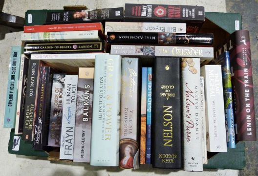 Assorted volumes on various subjects to include:-Hendrickson, Paul"Hemingway's Boat - Everything He Loved in Life and Lost 1934-1961", The Bodley Head, photographic frontis, published 2012, dj Bedell-Smith, Sally"Grace and Power, the Private World of the Kennedy White House", etc (3 boxes)