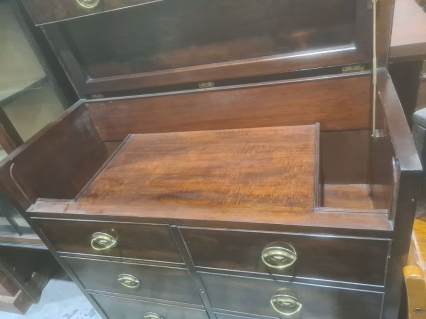 20th century mahogany cupboard, the lift-top above two cupboard doors, on bracket feet, 96cm x 92cmCondition Reportdamage to the top to include scratches, chips and an indent. There is loss to one of the planks on the back. There is some wood lose to the side of the base. One side has a surface crack and the other has some scratches. See attached images