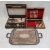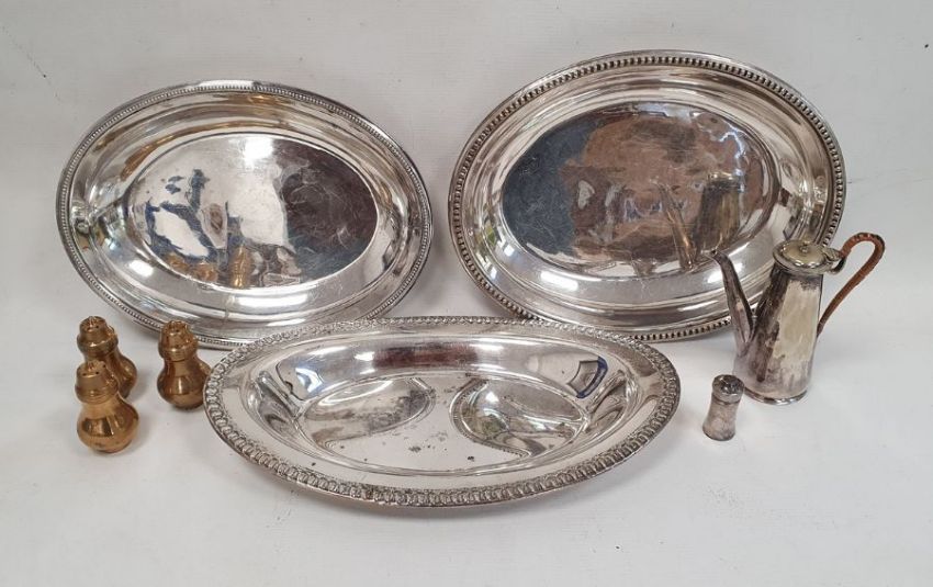 Assorted flatware, candlesticks, teapot, jugs, trays, etc, two cased canteens of flatware and a rectangular two-handled tray