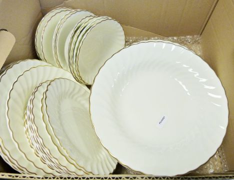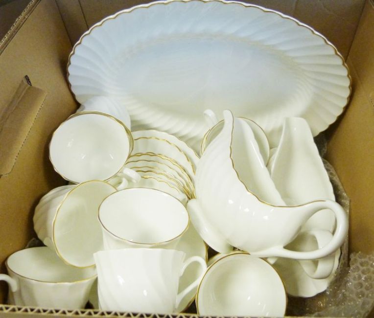 Wedgwood part-dinner service together with various metalwares and prints (3 boxes)