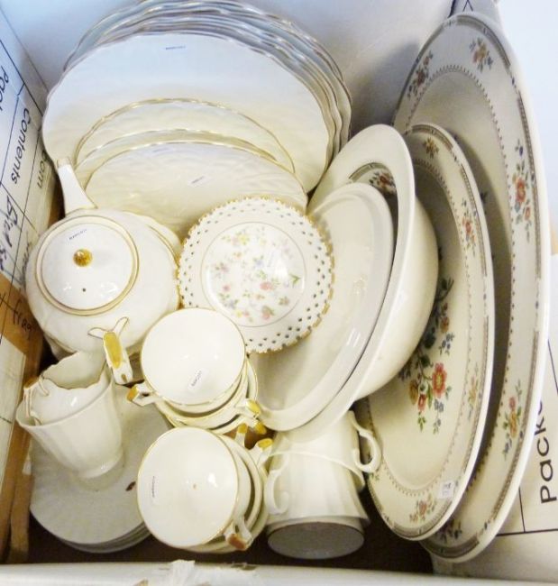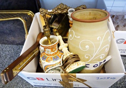 Large Denby vase, numerous collector's plates, a Wedgwood jasperware lidded trinket box together with further chinaware and household items (4 boxes)