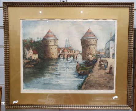 Hunting scene, signed and numbered 364/500 in pencil within the border, Margaret Aulton etching and drypoint in colours, together with further prints (4)
