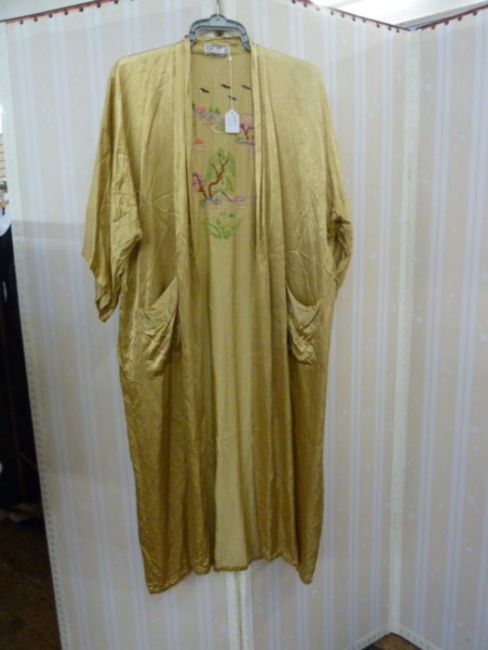 both dressing gowns very creased as possibly stored away for some years. The embroidered gown has label 'L' in it and the other '40'. NO obvious stains or wear, but these are vintage