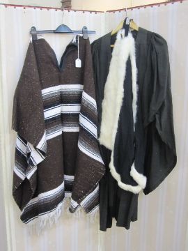 Woollen Peruvian poncho, a clerical gown labelled 'LDE & Ravenson', a swansdown trimmed gown labelled 'Grey & Son Robemasters Durham', a Grey & Son Ltd clerical gown and assorted vintage dresses and costume (18)