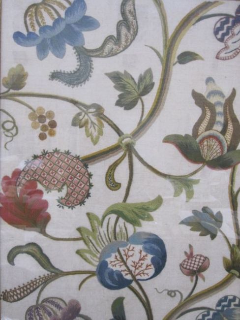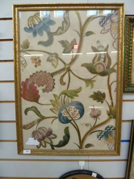 Early 20th century crewelwork panel, floral leaf decorated, 25cm x 45cm, framed - see imageCondition ReportNo apparent staining or wear, framed