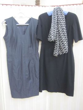 Amanda Wakeley black cocktail dress, a Paul Ka black wool cocktail dress, a PauW satin lined green jacket, a Gerard Darel wool dress (size 44), a Marc Jacob lurex cardigan, two black skirts, a black Marian Foale knitted cardigan with black bead detail and a Megan Park chenille velvet jacket with printed design