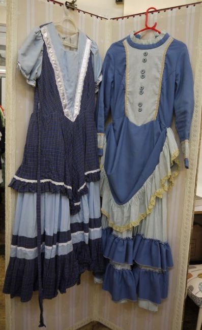 Assorted theatrical dress to include a Victorian-style skirt made for a bustle and a black clerical gown