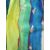 Pair of green, lime and blue striped curtains with gold coloured decoration, roman blind and tie backs, curtains approx 80 x 198 cm (2)