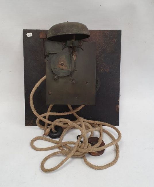 30-hour longcase movement as a bracket clock, a painted 11" square dial decorated with fruit and foliate spandrels and roman numerals, named to 'T Wood' at Lewes
