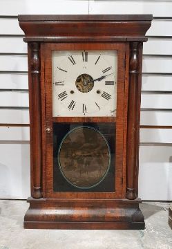 Rosewood American-style wall clock with Roman numerals, printed ice-skaters decoration to glass panel and a walnut-cased Vienna-type regulator clock with Roman numerals to the dial (2)