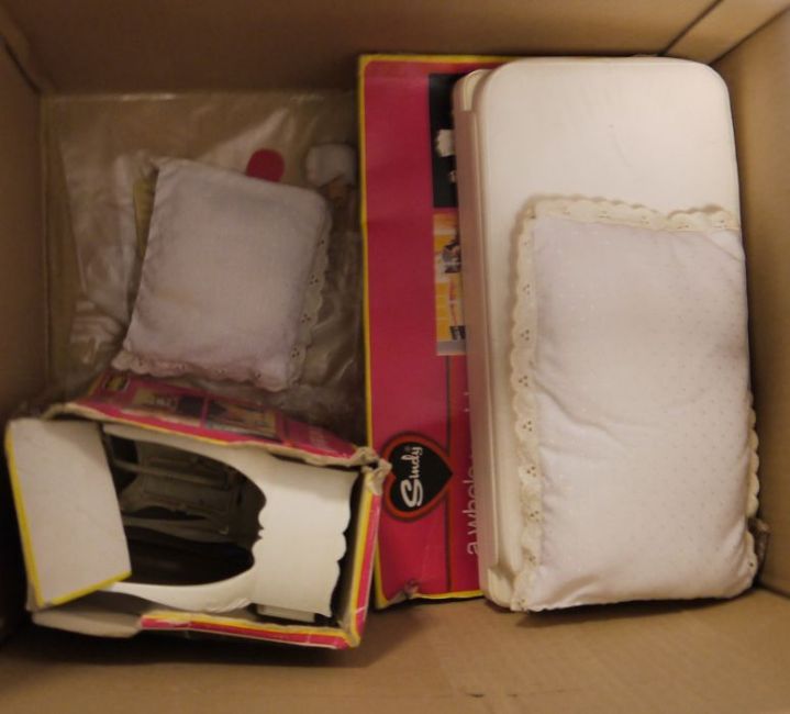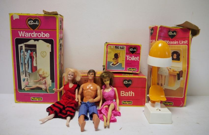 Assorted Sindy dolls and accessories, some boxed, to include bath, wash basin unit, wardrobe and horse (2 boxes)