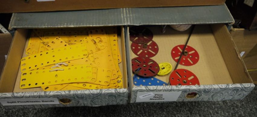 A large quantity of loose Meccano, in various collectors cabinets and boxes Meccano magazines etc