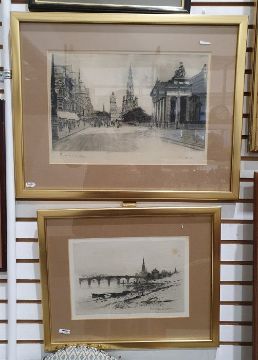 After D Y CameronEtchingPerth Bridge and another EtchingPrinces Street, Edinburgh (2)