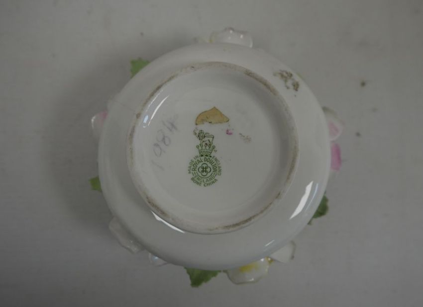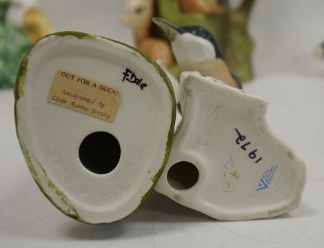 Royal Doulton figure HN2474 'Elyse', a Beswick model of a border collie, a Goebel model of a bird, marked CB84 and 1967 to base, an Out For a Duck figure, a Royal Doulton posy and an Eastgate jug (6)