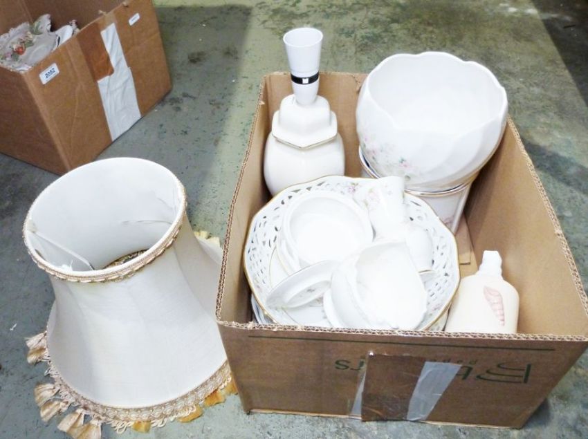 V Bassano Italy pottery candle holder, a cut glass bud vase, Villeroy & Boch serving tray, an Aynsley Pembroke serving dishvarious china and glassware and dolls (4 boxes)