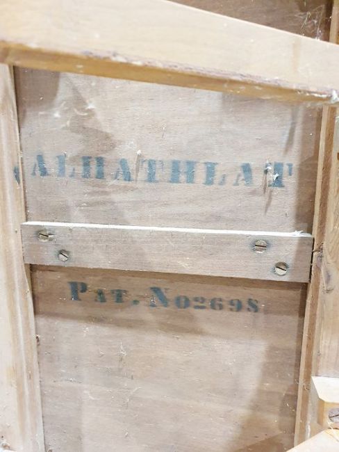 Folding campaign table with label underneath 'Allan Jones & Co, Gloucester'
