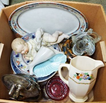 Murano spatter glass basket, a Poole pottery shell together with various china and glass (1 box)