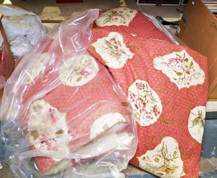 Colefax & Fowler 'Floral Cartouche' curtains lined and interlined, 128cm x 238cm (2)