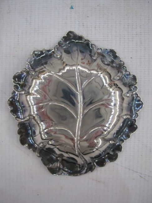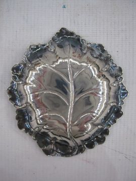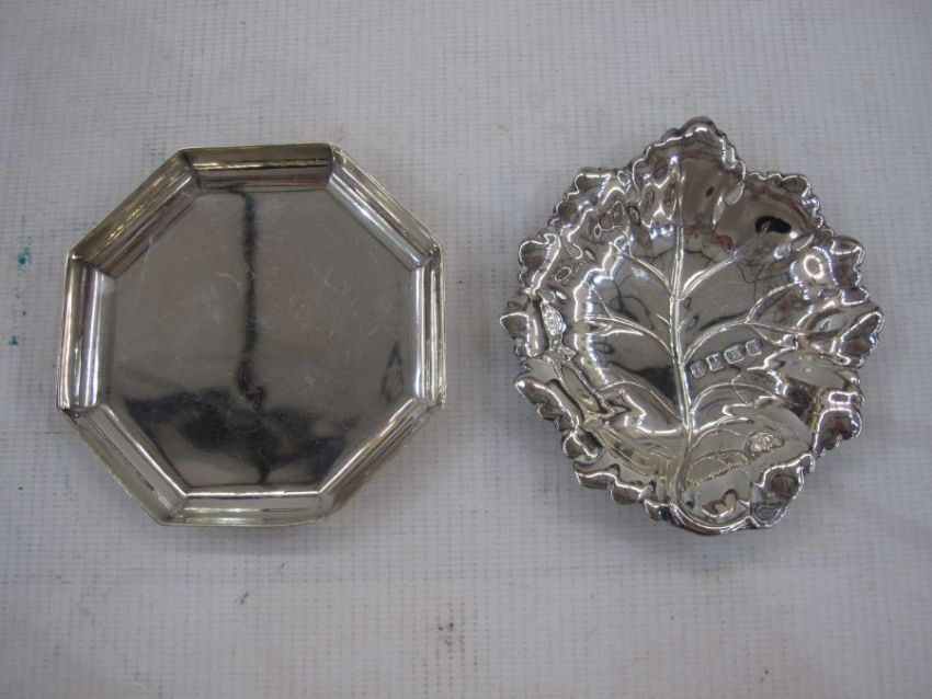 Silver octagonal pin tray and silver a leaf-pattern pin tray (2)