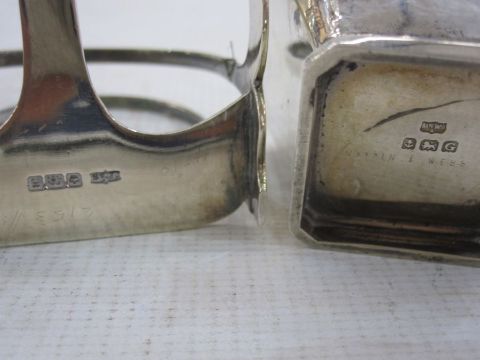 Silver six-division toast rack, Sheffield 1915, a silver salt and an engine-turned cigarette case (not silver) (3)