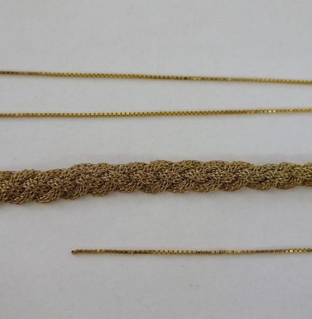 9K gold woven mesh bracelet and 9ct gold fine box chain (broken), 11g approx.