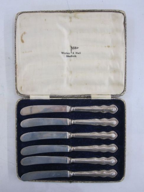 Set of six silver George V  tea knives, Sheffield 1932 by Walker & Hall