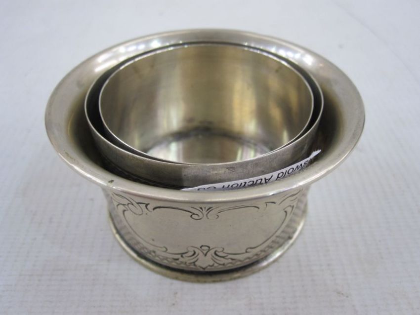 Continental 800 standard silver collapsible cup of circular form with flared rim, engraved cartouche and engine-turned bands, marked 'DK' to base, 7cm diameter, approx. 2ozCondition Reportplease see images - it collapses well and no apparent dings, the cartouche is blank
