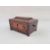 19th century mother-of-pearl inlaid rosewood workbox, sarcophagus-shaped, the raised panel with mother-of-pearl and foliate inlay, with gadrooned border, pair ring handles to the sides (one damaged), foliate and floral inlay to the front panel, on bun feet, 27cm wide approx.