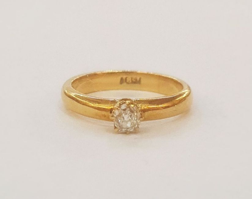 18ct gold and diamond solitaire ring, the band set with old cut circular stone, claw set, approx. 0.25ctCondition ReportApprox 3g