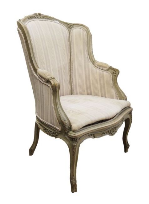 Possibly Swedish Gustavian-type armchair with painted and foliate carved top rail, upholstered back and serpentine-fronted seat, on cabriole legs