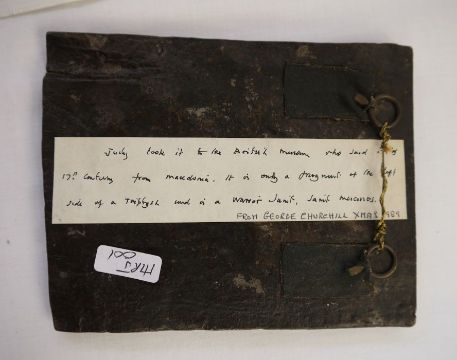 17th century Macedonian painted wood triptych panel 'The Left Hand Panel', half-length portrait of the warrior Janif Macondos with bow and arrow, inscribed, unframed