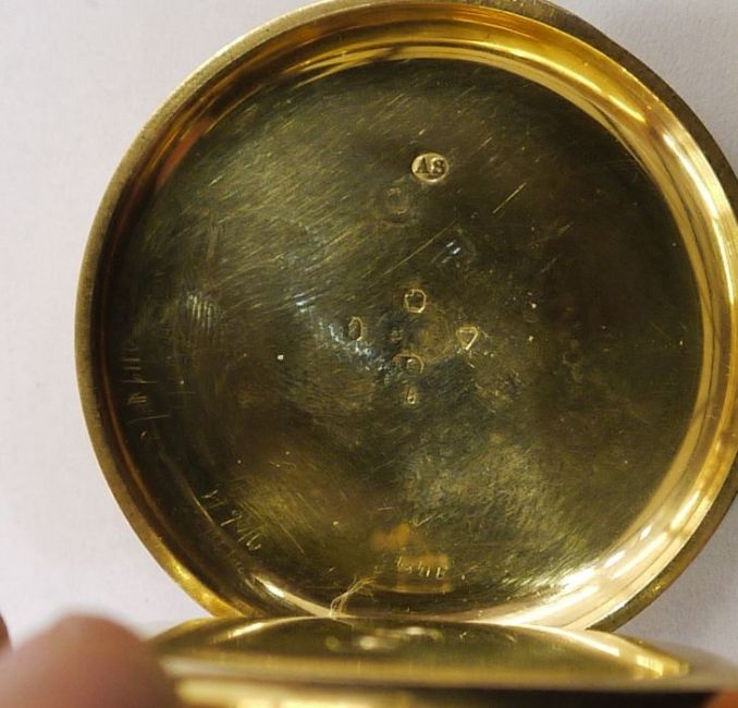 18ct gold hunter pocket watch by Cousens of London, in engine-turned case and having white enamel dial, Roman numerals, subsidiary seconds dial, key winding, the case marked London 1864Condition ReportPlease see additional imagesSome visible cracks to dial, small gap to rear when closed, (front appears ok), button sticking slightly, approx 4.9cm diaWe do not guarantee the watch is in working orderGross weight approx 106gm