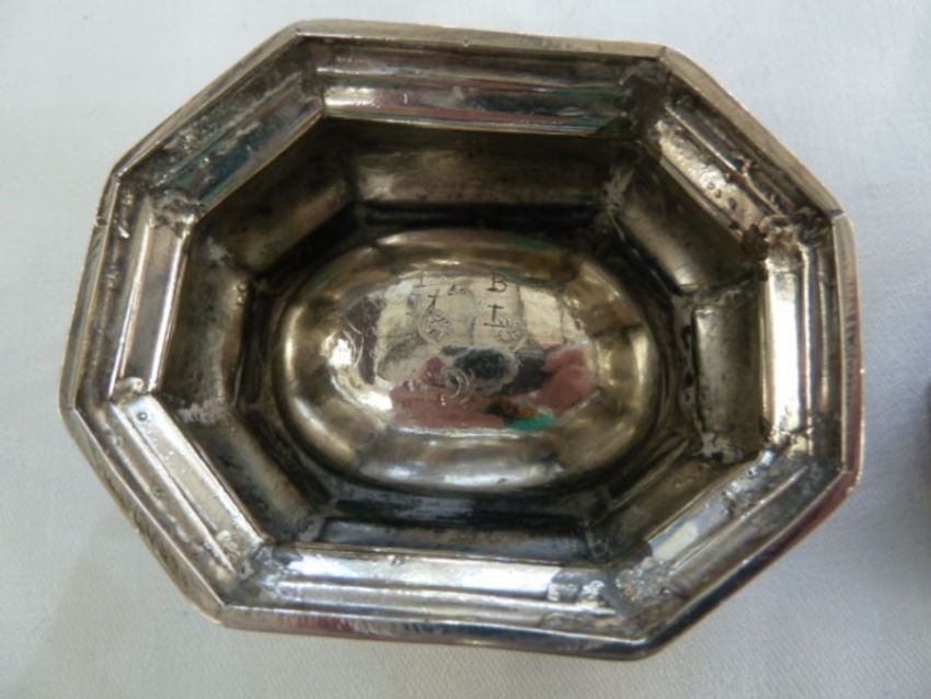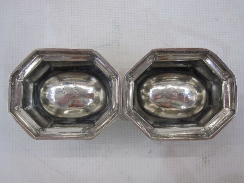 Pair of George I trencher salts, Britannia standard silver, of rectangular form, engraved to base IB to MI, London 1718Condition Reportplease see additional images, some soldering repairs to the bases