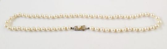 Cultured pearl, single-strand necklace with silver clasp, 46cm