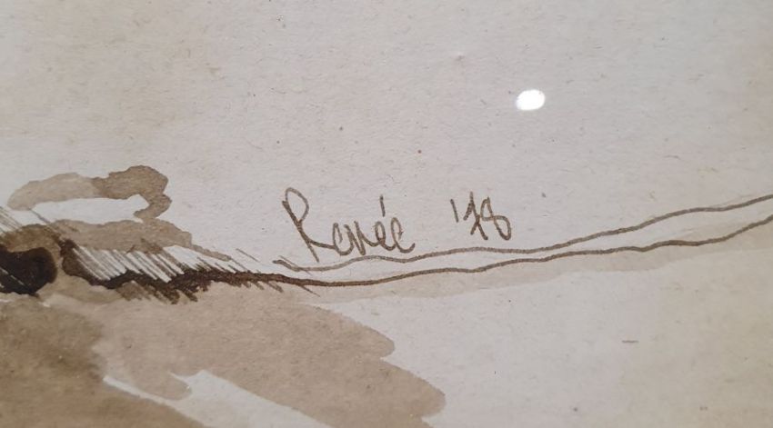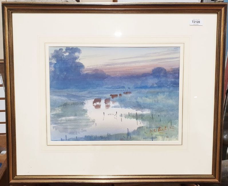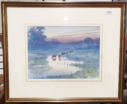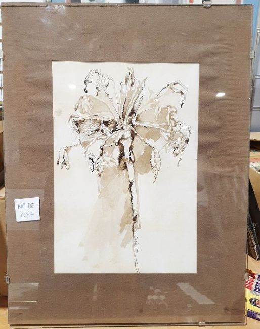 WatercolourEntitled verso cattle to water, indistinctly signed lower right, together with anInk wash study of a flower, signed Renee, dated '78 and Etching, indistinctly signed lower right (3)