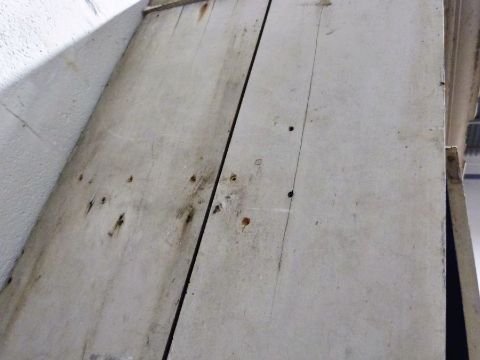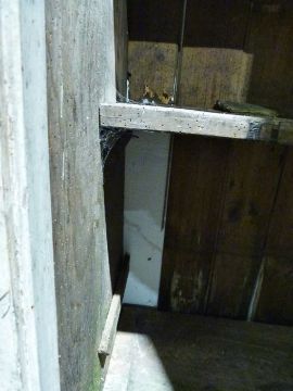 19th century vintage painted pine housekeeper's cupboard with sliding doors, assorted shelves, 210cm x 223cm approx.Condition ReportHeavy wear throughout along with various losses, in need of repair.Doors detached. Signs of past wood worm throughout, appears inactive.See pictures.