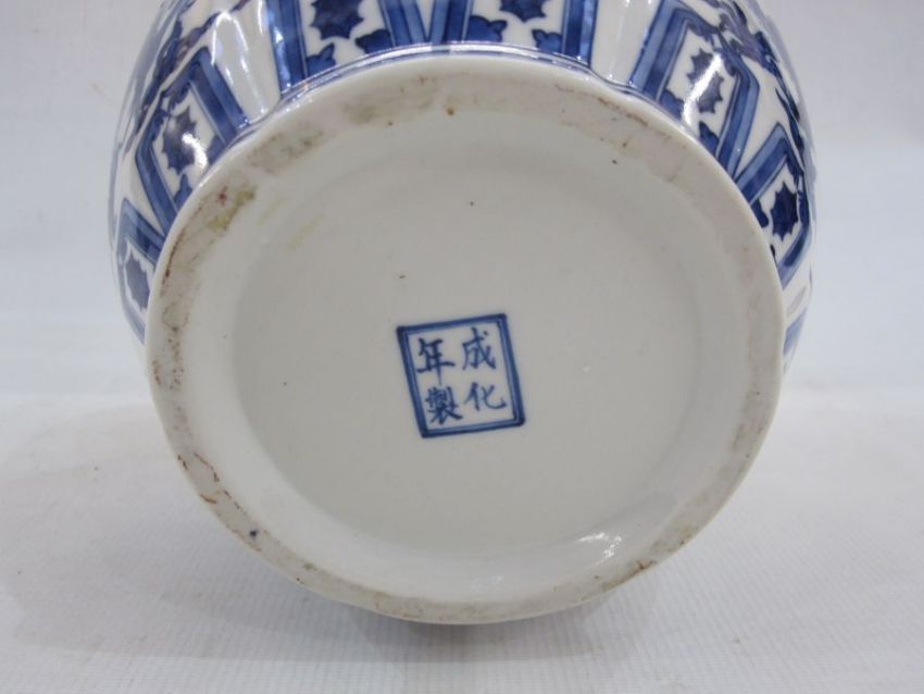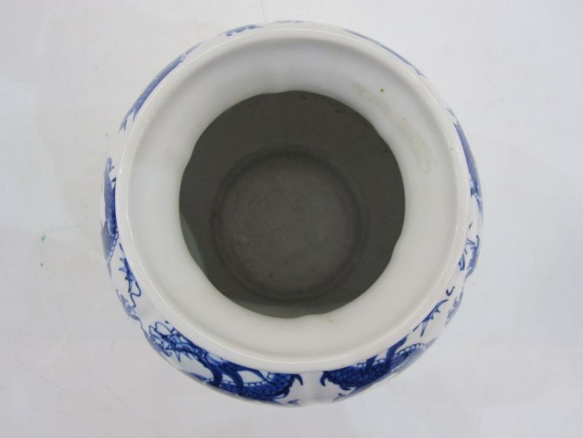 Modern Chinese vase, ovoid and slightly lobed, allover dragon decorated in underglaze blue, 23cm high