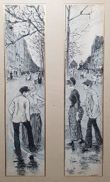 Theophile Alexandre Steinlen (1859-1923)Crayon charcoal and bodycolourIllustration for Gil Blas Illustre August 23rd 1891, each image approx 43.5 x 10 cm
