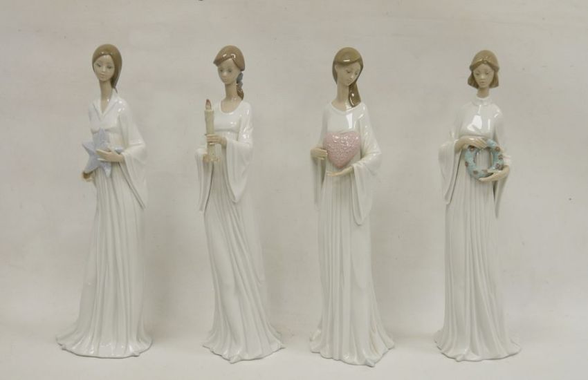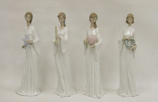 Four Lladro figures, printed impress marks, comprising: Unity No. 06377, Light and Fire, No. 06376, Beginning and End, No. 06378 and Love 06379, (tallest approx 35cm high) all boxedCondition ReportBeginning and end- no obvious major damage, some roughness to back of the hairLife and fire - no obvious major damagelove - no obvious major damageunity - no obvious major damagethere is some small damage to boxes.