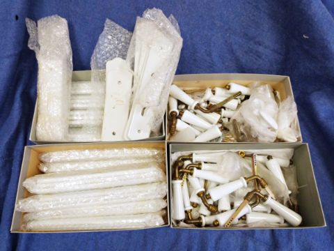 WITHDRAWN  Numerous white porcelain china handles, door handles, china lock plates  ( some French origin) and two white porcelain shelves