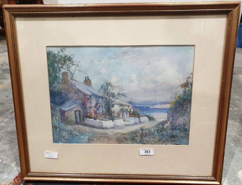 Seaside cottage scene, signed lower right, 25cm x 35cm and