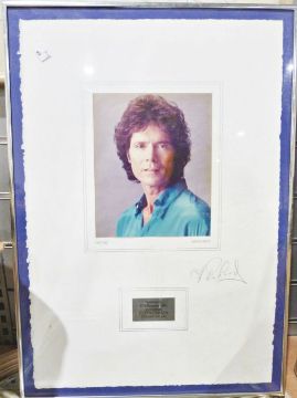 Cliff Richards signed presentation photograph, limited edition 14/75, by Lord Snowden, presented to EMI Records to celebrate Cliff Richards' 25th year in music, signed by the singer, a silvered wood rectangular wall mirror and a limed wood round-arch wall mirror (3)