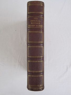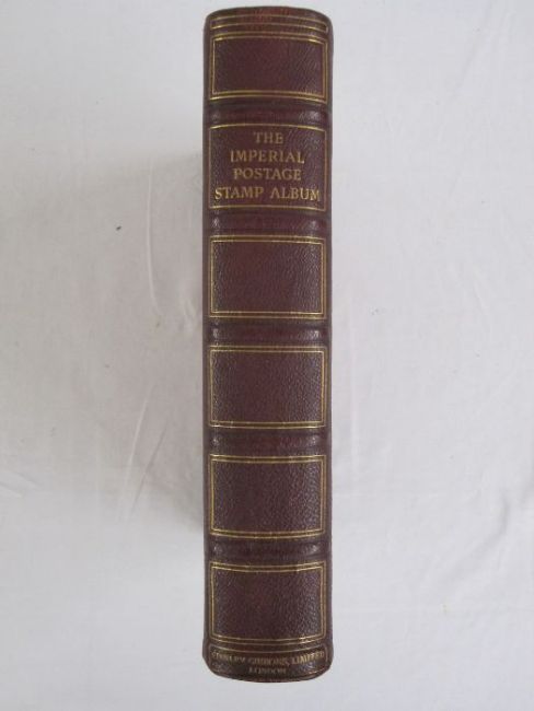 Imperial postage stamp album, first edition with printed spacers for British Empire stamps, two circa 1925, in fine condition with just a couple of loose pages, front cover slight wear, miscellaneous stamp poor to very fine including some KG V1 on blank page, value is in the album (1 album)