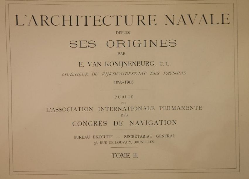 "Atlas Voies Navigables de la France ... par les Ingenieurs des Ponts et Chaussees, 2 Serie ... Navigation de la Seine en Amont de Paris ...", Paris 1903, with a service stamp on the front board, folding plates, designs, maps, etc., boards small folio "L'Architecture Navale de Puis ses Origines", 3 vols, published Congres de Navigation, Brussels, oblong folio (4)