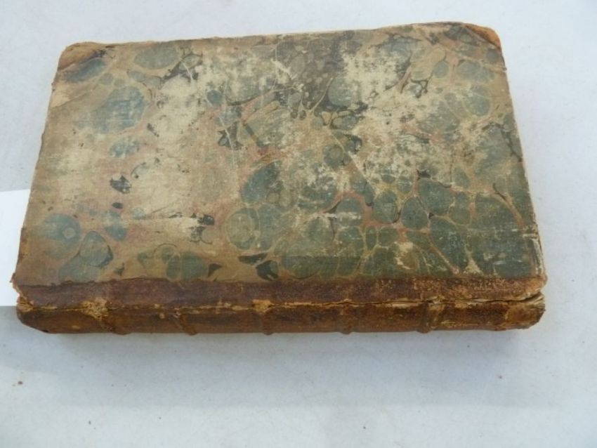 [Beckford William] " The History of the Caliph Vathek - An Arabian Tale from an Unpublished Manuscript..." printed for J Johnson, in St, Paul's Churchyard... 1786,  errata slip, final blank ep, contemporary marble boards, quarter-leather, all very bumped and rubbed, some slight foxing throughout, inked name on title page and inside front board,  page 125 top right hand corner torn off, ffep's missing and possible half title