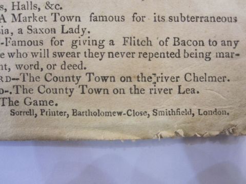 Wallis's New Geographical Game, Exhibiting a Tour Through England and Wales", London, published John Wallis 1802, engraved map with contemporary hand-colouring, sectionalised and laid on linen, two columns of rules and town descriptions, 51cm x 66cm, in contemporary card slip case with the publishers printed label, both with worn and split, with small tear on the publishers label Condition ReportPlease see additional image