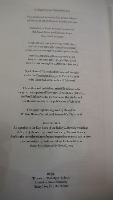 Tattersfield, Nigel "Thomas Berwick, the Complete Illustrative Work" in three vols, The British Library, The Bibliographical Society, Oak Knoll Press 2011, illustrations throughout, green cloth, 3 vols, gilt titles and black pastedowns to backstrip