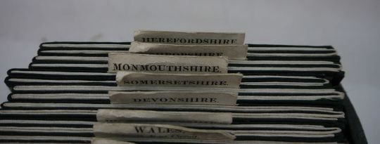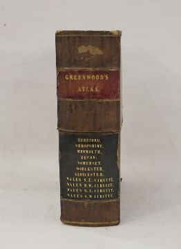 Maps - C & A J Greenwood from Greenwood's Atlas - Hereford, Shropshire, Monmouth, Devon, Somerset, Worcester, Gloucester, Wales North East Circuit, Wales North West Circuit, Wales South East Circuit, Wales South West Circuit, published January 26th 1831, backed onto linen, with marbled paper on the foldovers and the names of the maps as a lift up, all within a custom built box which is full tree calf, titled pastedown in the form of a book