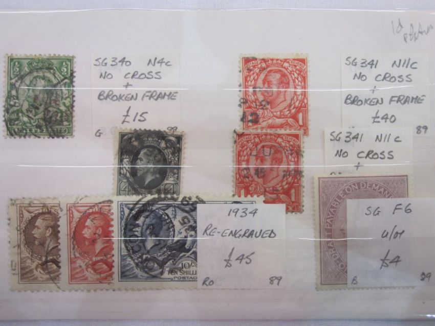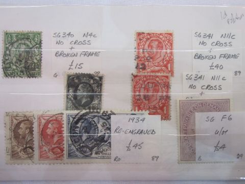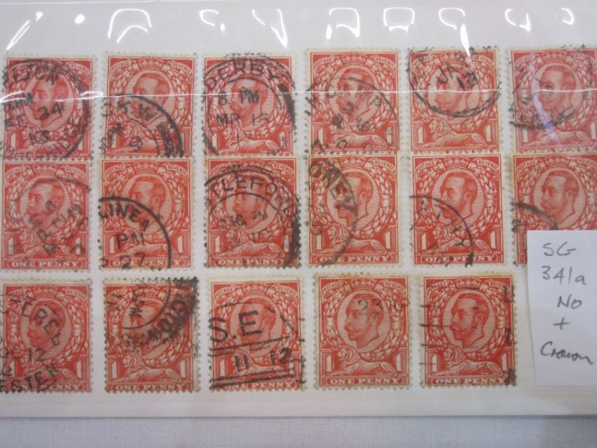 KGV 5 cards with 24 1d's. No cross on crown. Vertical pair of 1d unmounted mint.