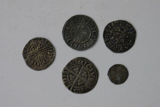 Henry III (1216-1272 Penny, Long Cross, London Class 5c (1) Group of Edward I (1272-1307) Pennies and farthing (4) of which 3 Pennies include Durham & London and a farthing of London